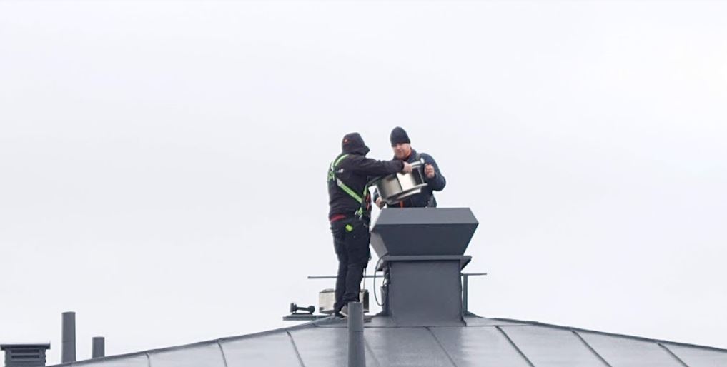 Det krävdes många medlemmars gemensamma insatser för att förpassa den trasiga krukan till containern.